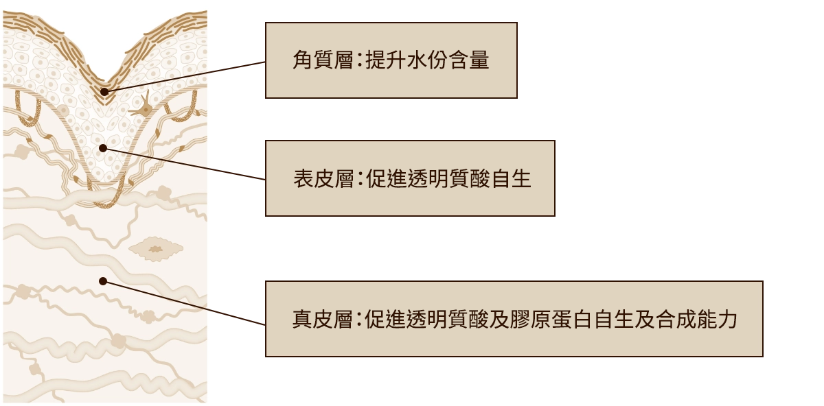 高純維A促進肌膚自生透明質酸,提升水份含量,令肌膚更柔軟細嫩;