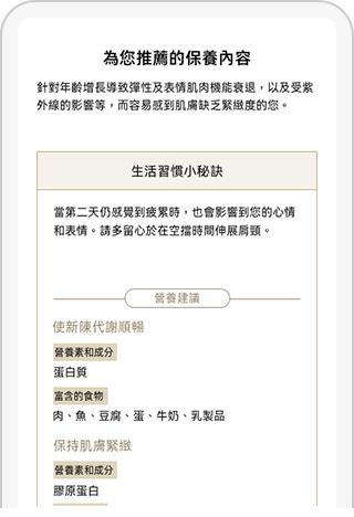 獲得全方位的專屬建議,包括護膚建議及生活習慣小貼士。